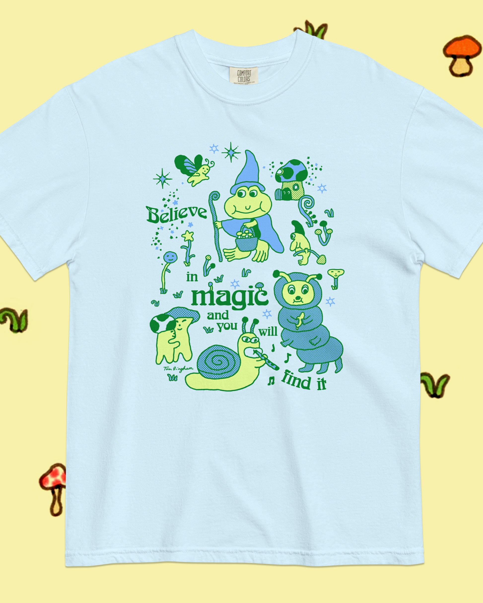 All t-shirts are made to order by my partner printers in the UK. Please note, if you order t-shirts alongside prints or stickers they will all be shipped seperatley. This is because prints and t-shirts are made to order by specific specialist printers away from my studio!